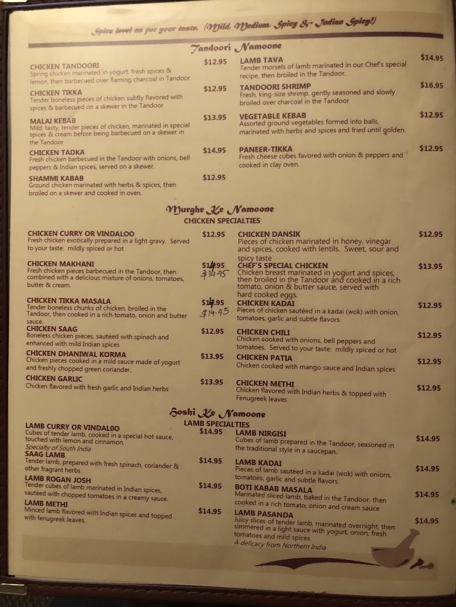 Visitors can expect popular choices like Chicken Tikka Masala and Butter Chicken alongside a variety of vegetarian options such as Paneer Pakora and Vegetable Korma. The menu also features a range of freshly made breads like Garlic Naan and Pudina Paratha, perfect for pairing with rich curries or spiced lamb dishes like Saag Lamb and Rogan Josh.