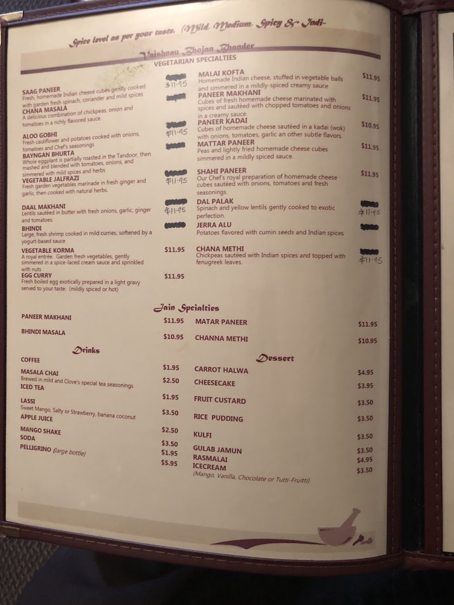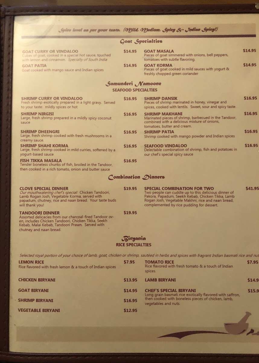 Clove Fine Indian Cuisine Menu