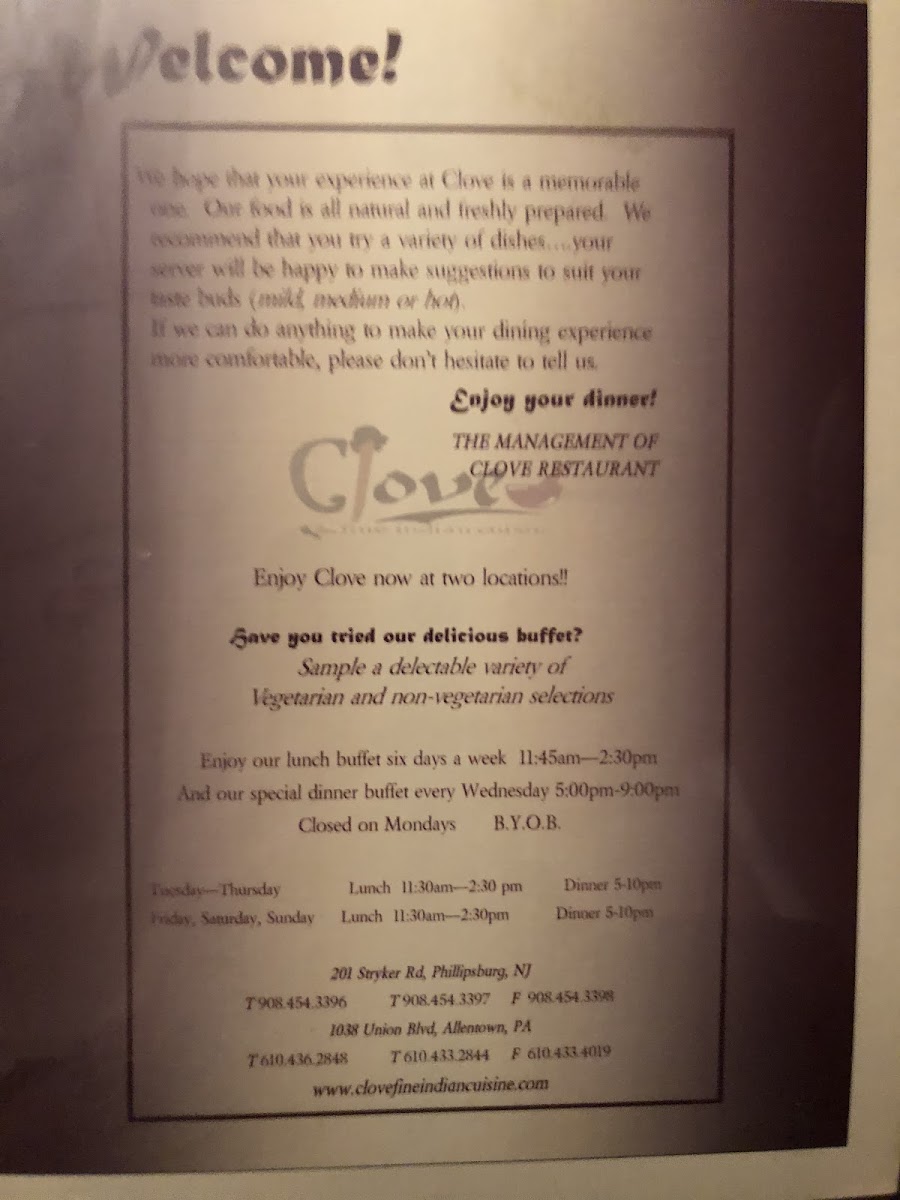 The menu at Clove Fine Indian Cuisine offers a thoughtful balance of classic Indian dishes and comforting flavors, presented in a straightforward and approachable way. Whether you're stopping by for a casual lunch or settling in for a relaxed dinner, the selection invites both newcomers and those familiar with Indian cuisine to enjoy hearty, satisfying meals.